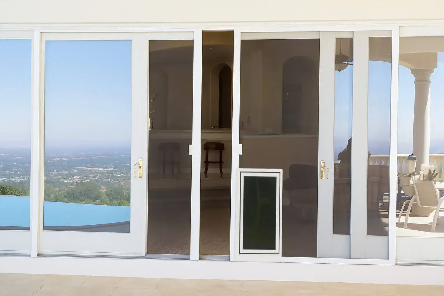 Frameless or Minimal-Frame Screens — no solid frame to mount a pet door securely.